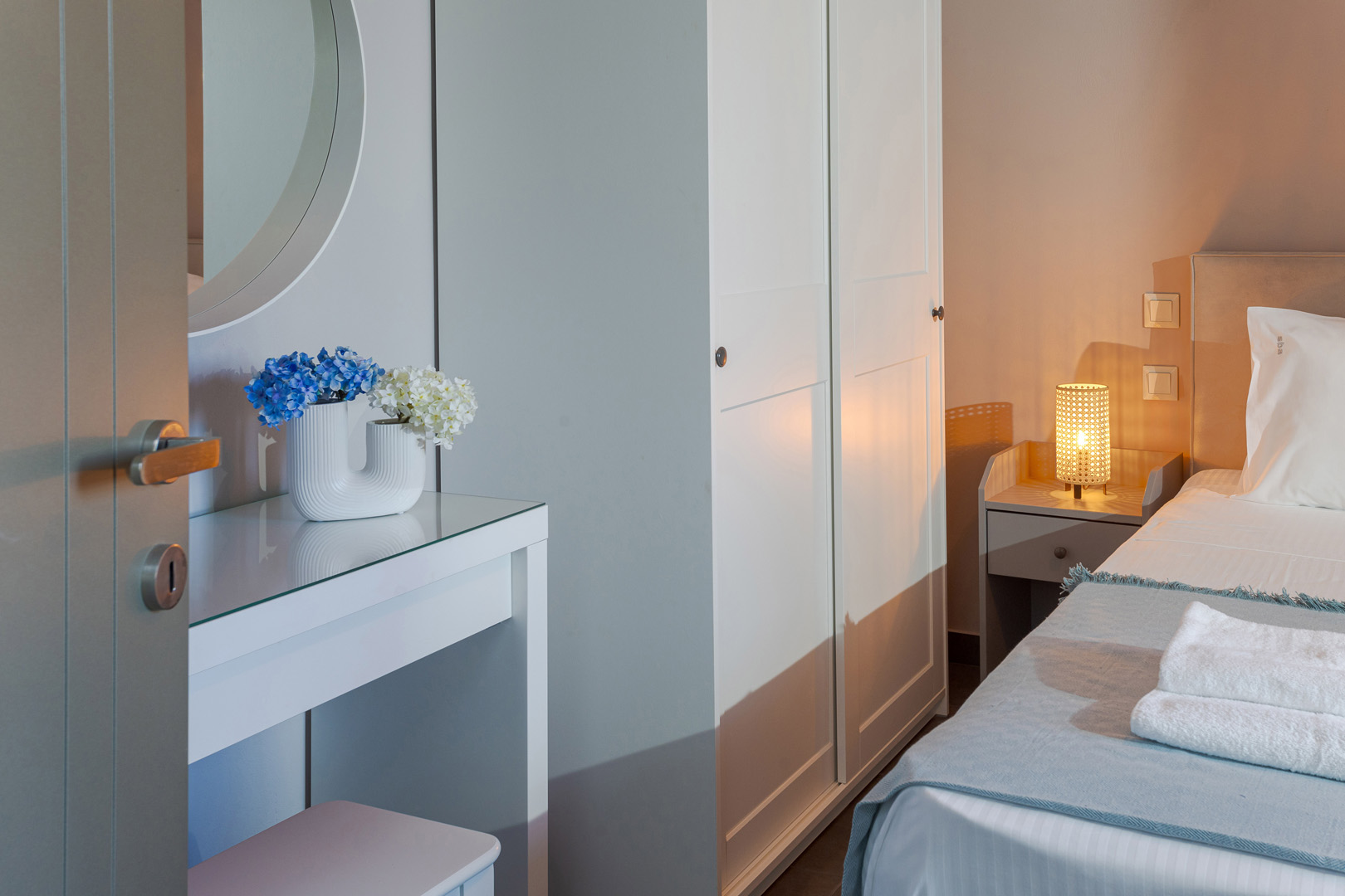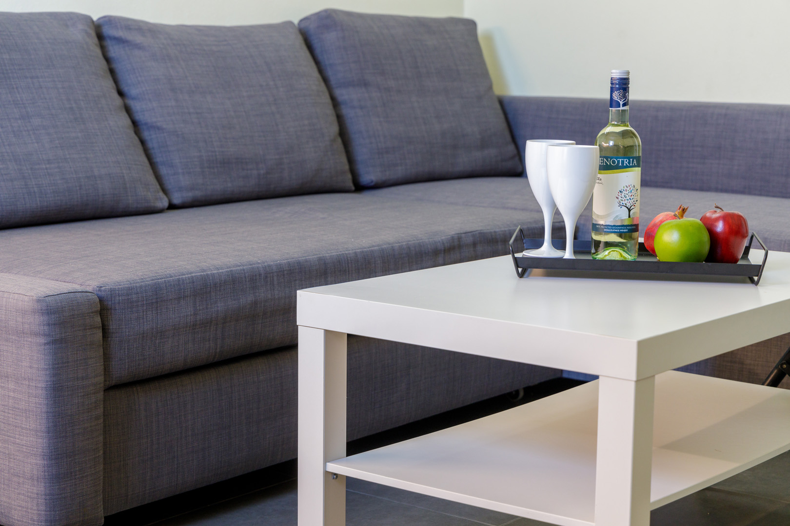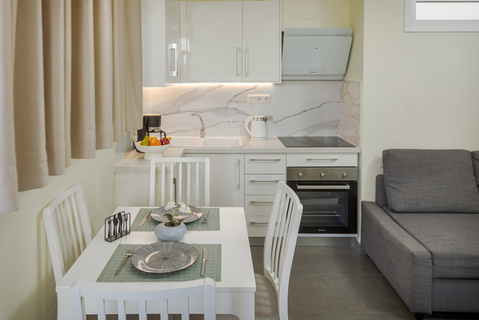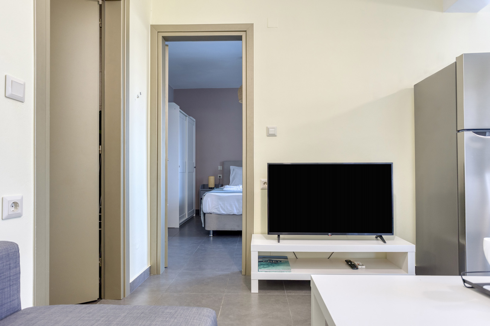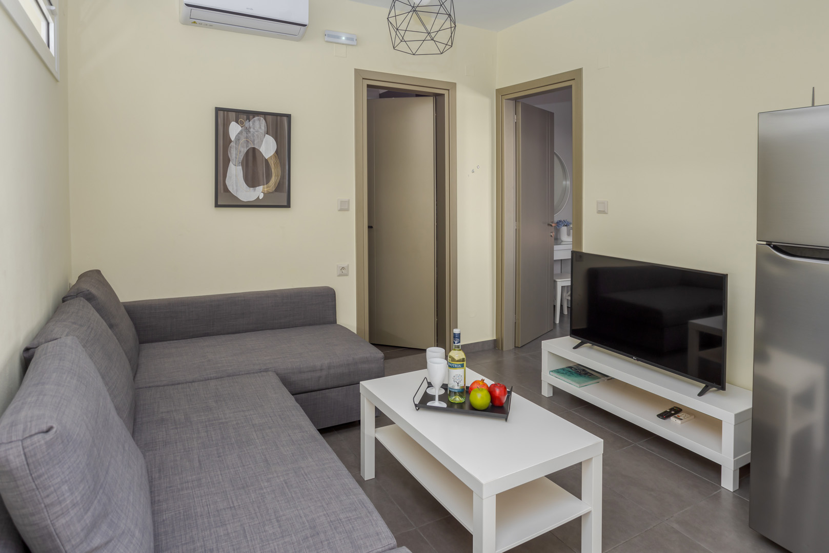 Ground floor apartment, also boasts a fully equipped kitchen with all essential appliances, including a coffee maker, toaster, water boiler, and six ceramic electric stoves with an electric oven—ideal for preparing home-cooked meals. The living area includes a 43′ smart TV and broadband Wi-Fi, ensuring entertainment and connectivity throughout your stay.
